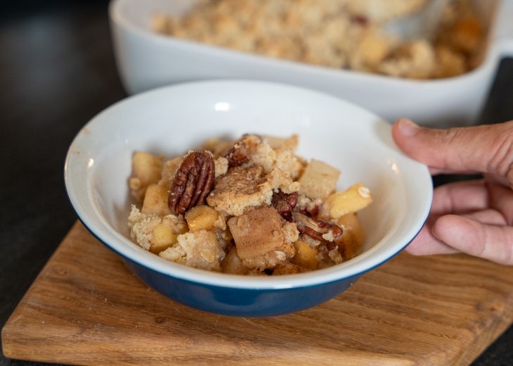 Quand il fait encore frais, ce crumble pommes–poires aux noix est le dessert réconfortant par excellence : simple, rapide et toujours réussi. La pâte au flocons d’avoine apporte du croustillant et rend le tout un peu moins sucré, tout en restant ultra gourmand. Vous pouvez le décliner avec d’autres fruits tout au long de l’année bien sur.