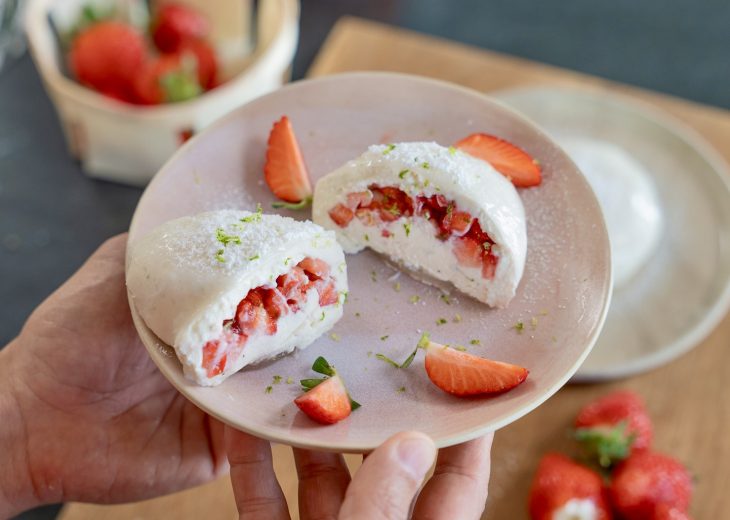 À l’intérieur, une crème mascarpone–ricotta douce et légère, associée à un cœur de fraises fraîches parfumées au citron vert. Le contraste est parfait : fondant, frais, légèrement acidulé… et surtout ultra simple à réaliser. Une recette idéale si vous cherchez un dessert rapide aux fraises, sans cuisson, qui fait son effet dès la première bouchée.