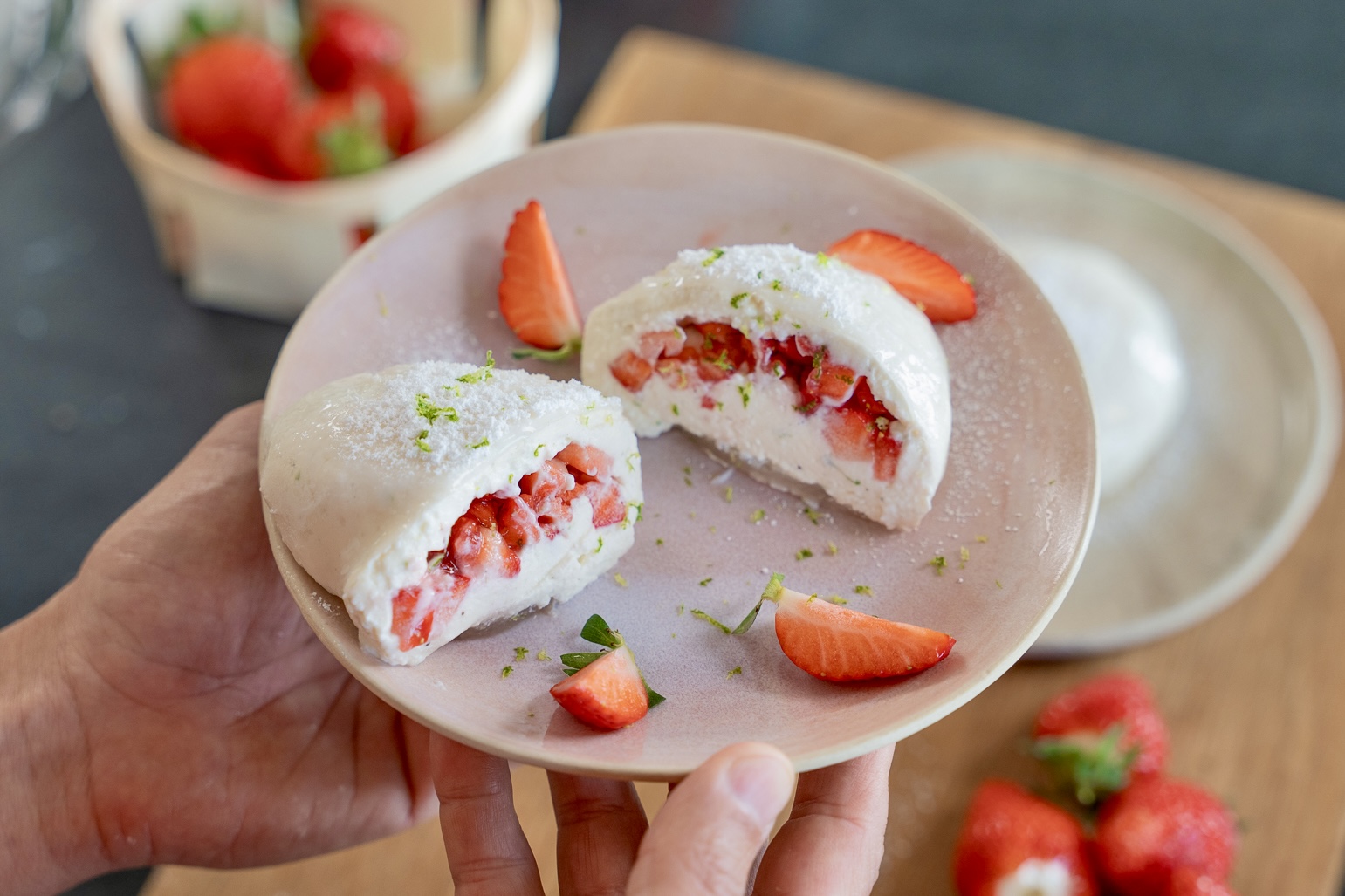 À l’intérieur, une crème mascarpone–ricotta douce et légère, associée à un cœur de fraises fraîches parfumées au citron vert. Le contraste est parfait : fondant, frais, légèrement acidulé… et surtout ultra simple à réaliser. Une recette idéale si vous cherchez un dessert rapide aux fraises, sans cuisson, qui fait son effet dès la première bouchée.