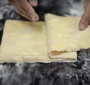 Il faudra étaler et plier 4 fois la pâte au total pour avoir un effet feuilleté satisfaisant.
