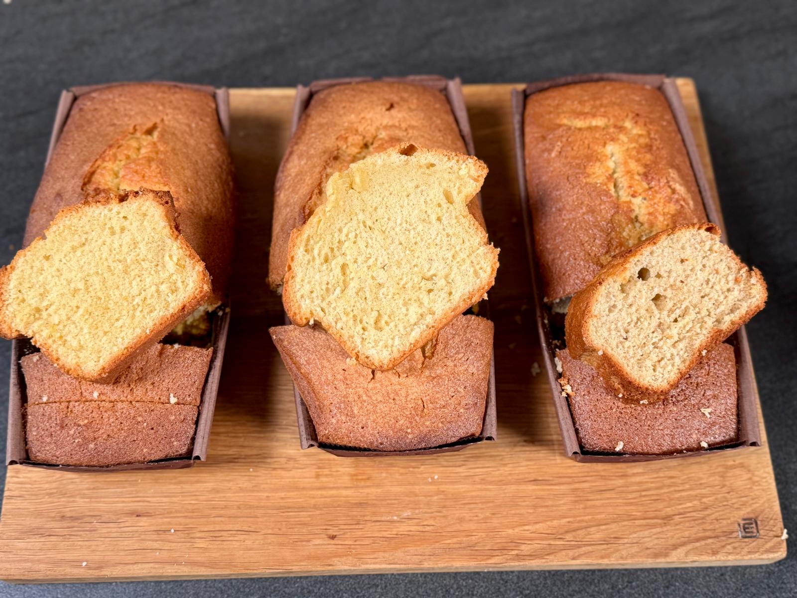 Pour y répondre, j’ai réalisé un vrai crash test en cuisine en préparant trois quatre-quarts strictement identiques : mêmes ingrédients, mêmes quantités, même moule et même temps de cuisson. Un seul paramètre varie.