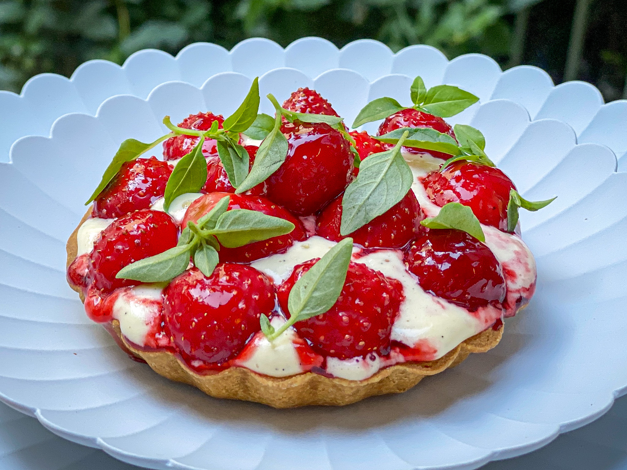 On profite des dernières fraises pour réaliser cette recette de chef de tarte aux fraises, crème vanillée et sa pâte à choux ultra craquante pour changer de la pâte brisée. Je l’ai réalisé avec le chef Florent Pietravalle du restaurant étoilé La Mirande à Avignon. Retrouvez toutes mes recettes de tartes et tartelettes, comme ma recette de la tarte framboises maison, tarte aux fraises facile en 3 étapes, ou encore ma recette des tartelettes mûres, crème mascarpone et speculoos
